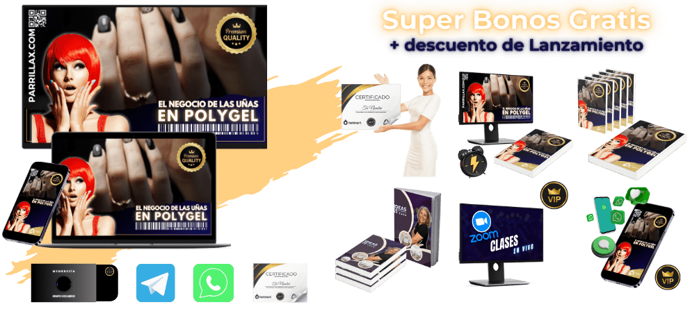 Si ya has logrado identificar los múltiples beneficios que llegaran a tu vida, al certificarte en esta solicitada y rentable técnica de uñas en polygel, te gustará saber que, si decides certificarte, además de la formación en línea y, solo si te registras HOY tendrás ACCESO GRATUITO a 4 BONOS ADICIONALES.